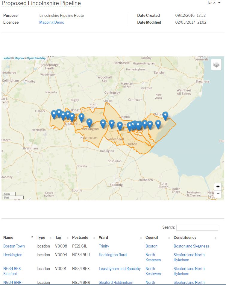 Mapolitical has the capability for users to plot in their own infrastructure onto a UK map, save their work and view it again at a later date and produce political mapping reports.
